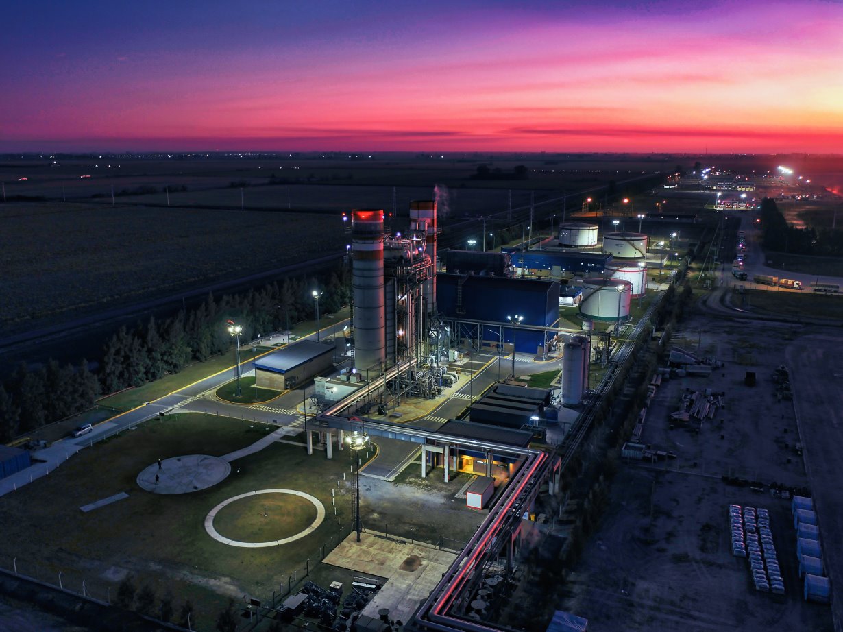 Timbues Cogeneration Thermal Power Plant generates energy through a 170 MW gas turbine and is sold to CAMMESA. The gases resulting from the turbine combustion are injected into a boiler to produce steam which is sold to a private client for its production process.